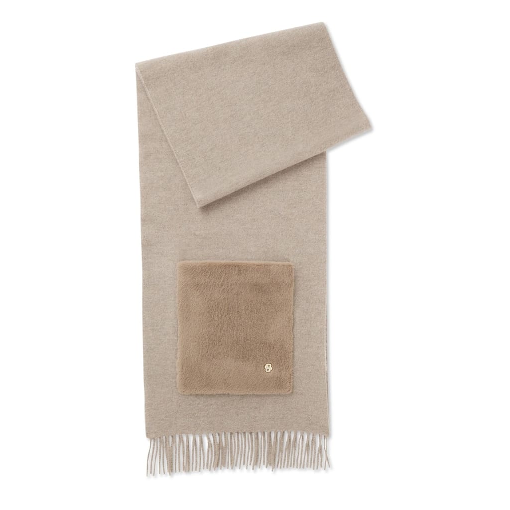 Add a touch of luxury to your cold-weather accessories with the Grayce Scarf from BOSS. Crafted from a wool blend for cosy warmth, it features soft faux fur pockets that combine style with practical comfort. Finished with a distinctive BB gold metal rivet, it’s perfect for elevating any winter outfit, from city strolls to evening outings.