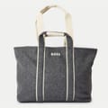 This Boss tote bag showcases a sophisticated color block pattern, perfect for those who appreciate style and functionality. Featuring a top handle for easy carrying, it is adorned with a subtle logo embellishment, adding a touch of brand elegance. Ideal for daily use, this tote combines practicality with a chic design, making it a versatile addition to any wardrobe. -