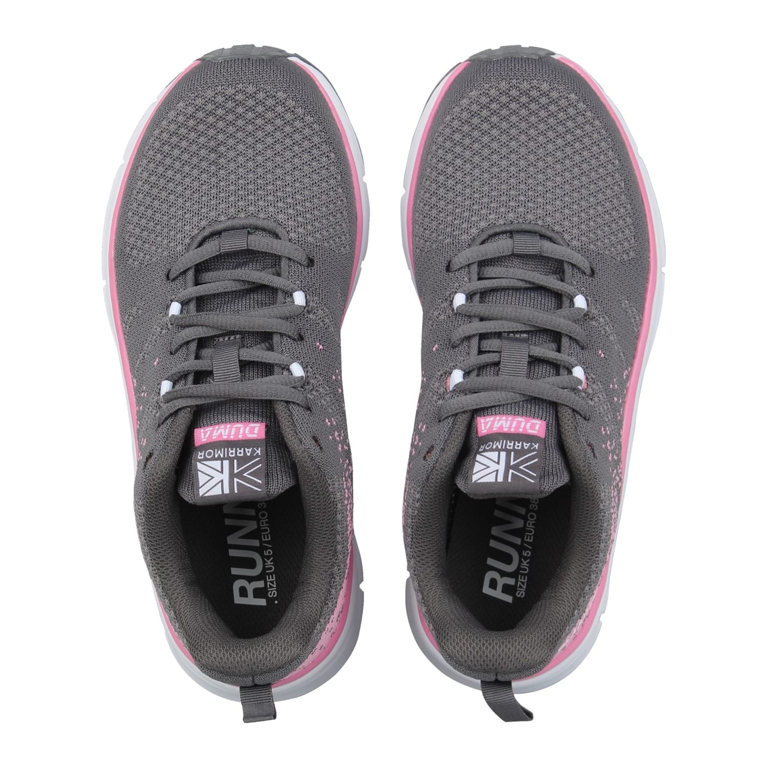 The Karrimor Duma 6 running shoes are the perfect shoes to start your running journey. This entry level running shoe has a low-profile ankle, heel pull tab and a lace fastening for that secure fit. The seamless knitted upper provides a strong and more durable shoe. To give you that little extra cushioning, the Karrimor Duma comes with an EVA insole. The phylon midsole keeps the shoe lightweight and provides extra cushioning, whilst the rubber pods on the outsole give you extra traction. -