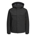 This Jack & Jones softshell jacket from the casual collection features a hooded design and a regular fit. It comes with a zipper closure and a straight hem. The solid pattern is complemented by practical pockets, including zipped pockets, offering both style and functionality. -