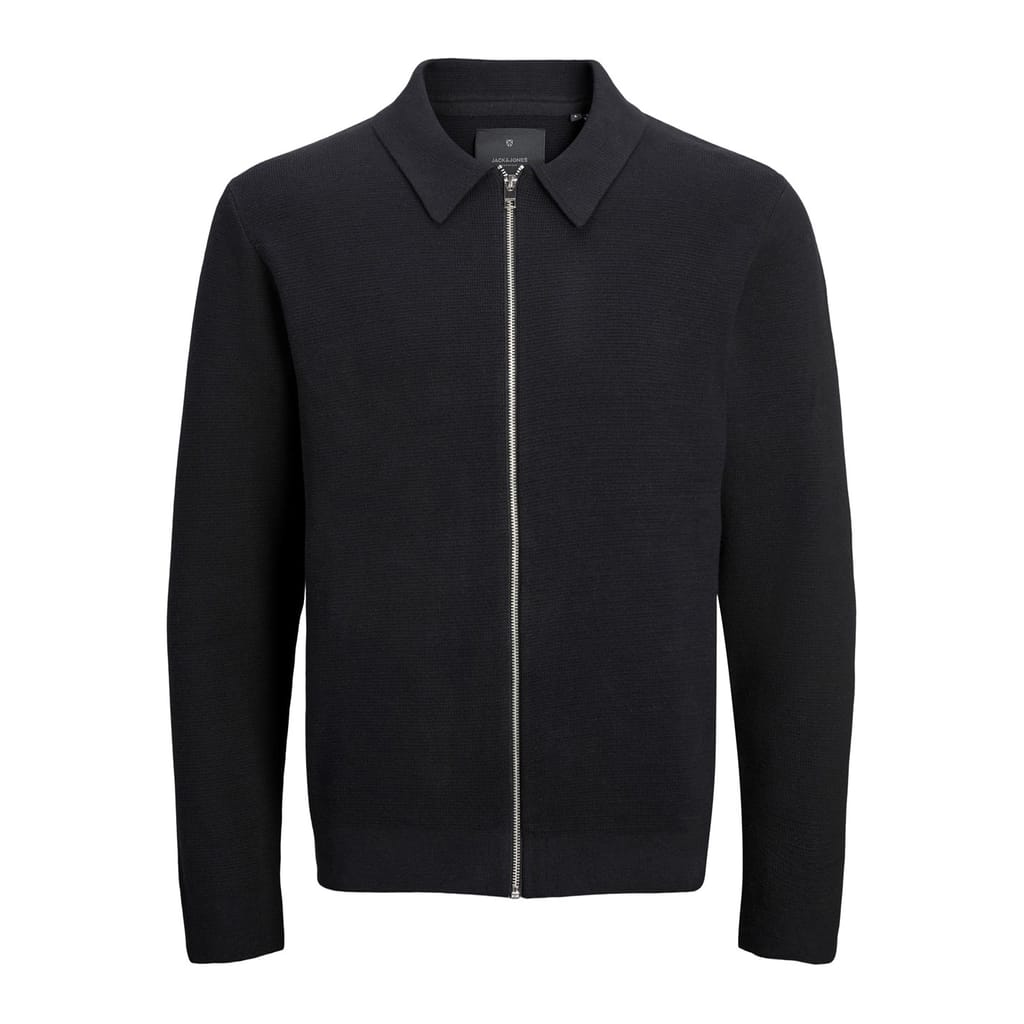 This Jack & Jones knit jacket from the casual collection features a full zipper closure and a shirt collar. Designed in a solid pattern, it offers a regular fit with a straight hem. The jacket is embellished with a logo, adding a subtle touch of brand identity. -