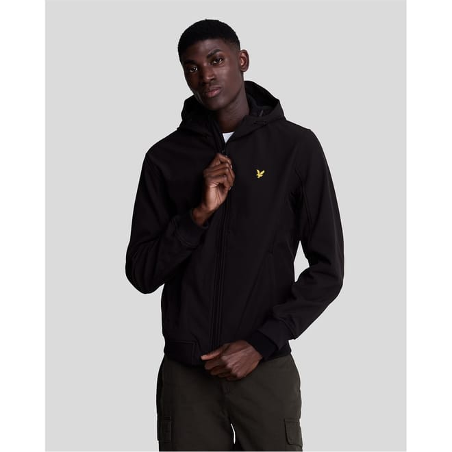 This Lyle & Scott softshell jacket features a hooded neck and a zipper closure, offering a practical and stylish choice for cooler weather. The regular fit ensures comfort, while the ribbed cuffs and hem provide a snug finish. The solid pattern is complemented by the brand's logo embellishment, adding a touch of distinction to this versatile piece. -