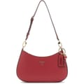 Elevate your ensemble with this Noelle Shoulder Bag from Guess. Expertly made from a faux leather outer for a luxurious look, punctuating your evening ensemble with a glamorous edge. Wear it your way with the detachable and adjustable handle allowing you to wear it on your shoulder for a hands-free look or handheld for a glamourous touch. With the top zip fastening opening up to reveal a roomy interior this bag is big enough for your night out essentials allowing for ease of access and organization. Designed in a classic colourway this bag boasts a metallic Guess triangle with silver-toned hardware for an eye-catching appeal.