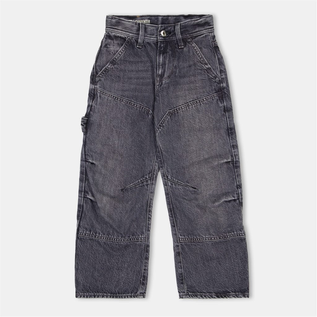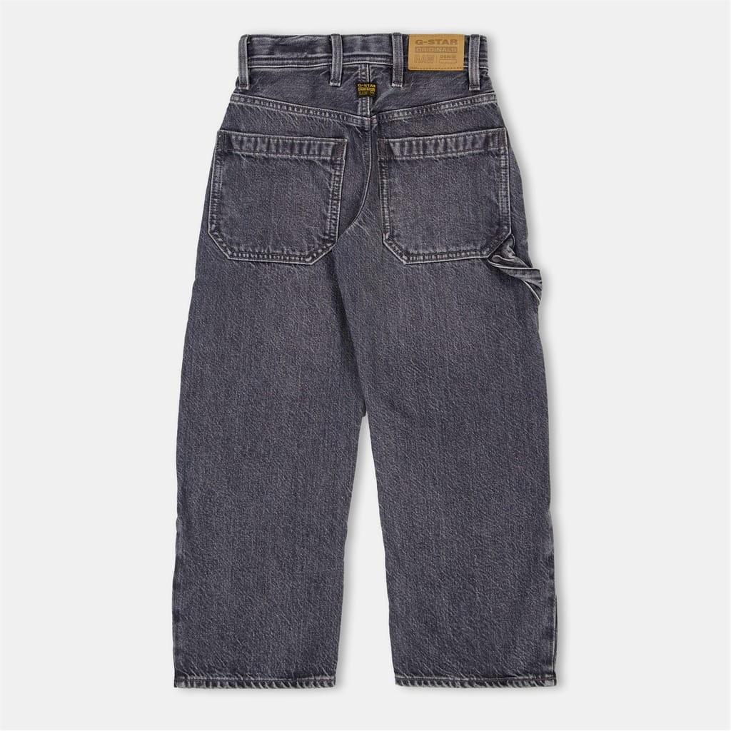 G-Star carpenter jeans feature a relaxed fit with a wide leg cut, offering a comfortable and stylish option. The jeans come with a zip fly, front button, and belt loops for secure closure. Embellished with multiple pockets, including tool and patch pockets, and detailed stitching, these jeans showcase a washed pattern for a modern look. -