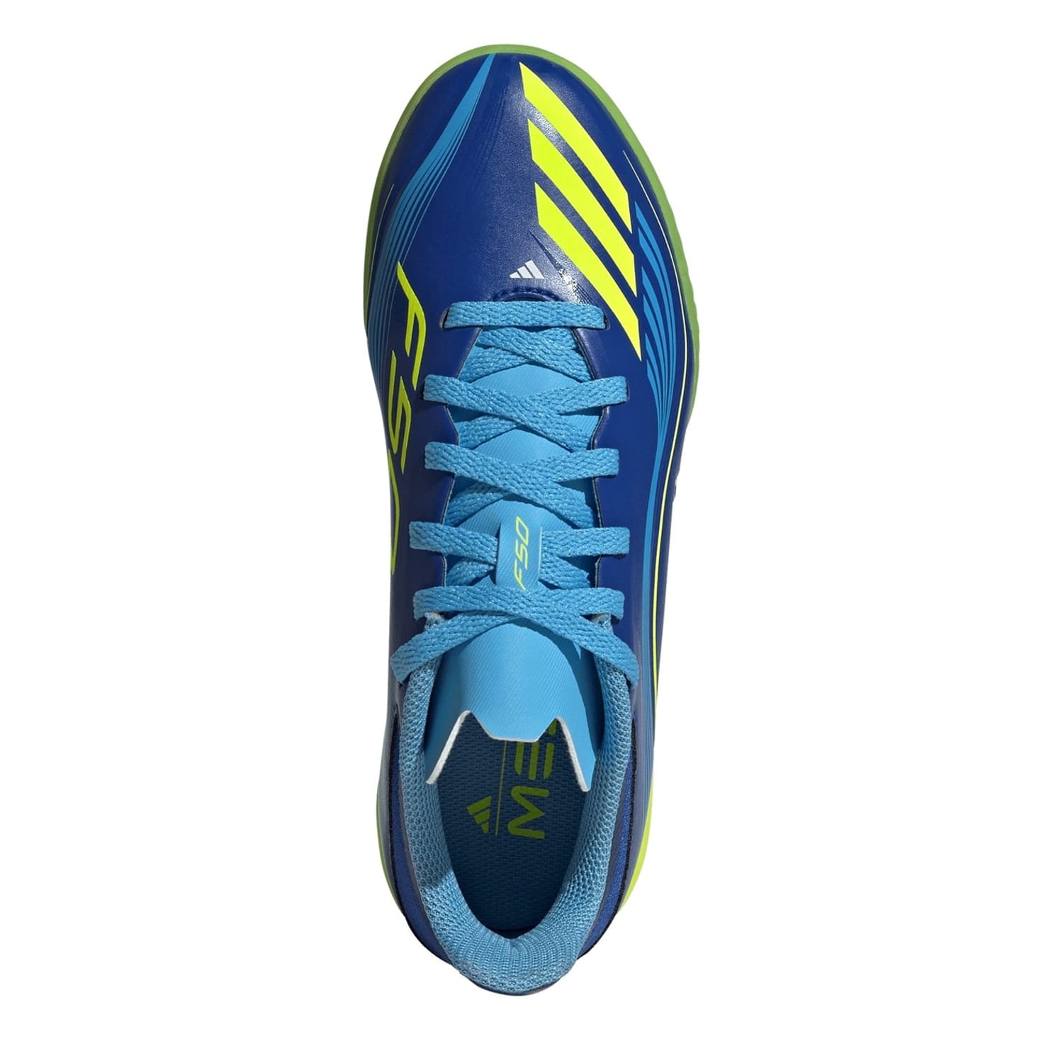 The adidas F50 League Astro Turf Football Boots are designed for young footballers who want to command the pitch with speed and skill. The HybridTouch upper provides exceptional ball control and comfort. Perfect for training, matches, or casual games on artificial turf pitches.