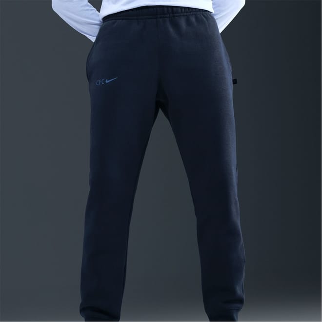 Back the Blues on downtime with the Nike Chelsea Club Tracksuit Bottoms. Cut in a tapered fit from soft French terry for an easy, comfortable feel, they’re made for layering before and after the match. Sweat-wicking fabric helps keep you dry when the tempo rises. Finished with Chelsea details and the Swoosh for a clean, game-ready look