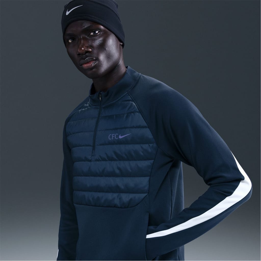 Train through the cold in the Nike Chelsea Winter Warrior Drill Top. The slim, athletic fit moves with your body for unrestricted performance. Perfect for winter training sessions, warm-ups, or outdoor workouts in chilly conditions.