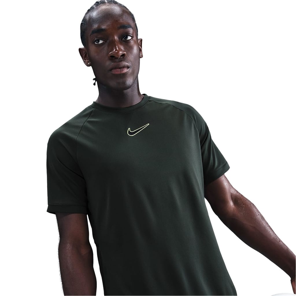 This Nike top is designed for performance with a solid pattern and a crew neck. It features short raglan sleeves and a regular fit, making it a versatile choice for various activities. -