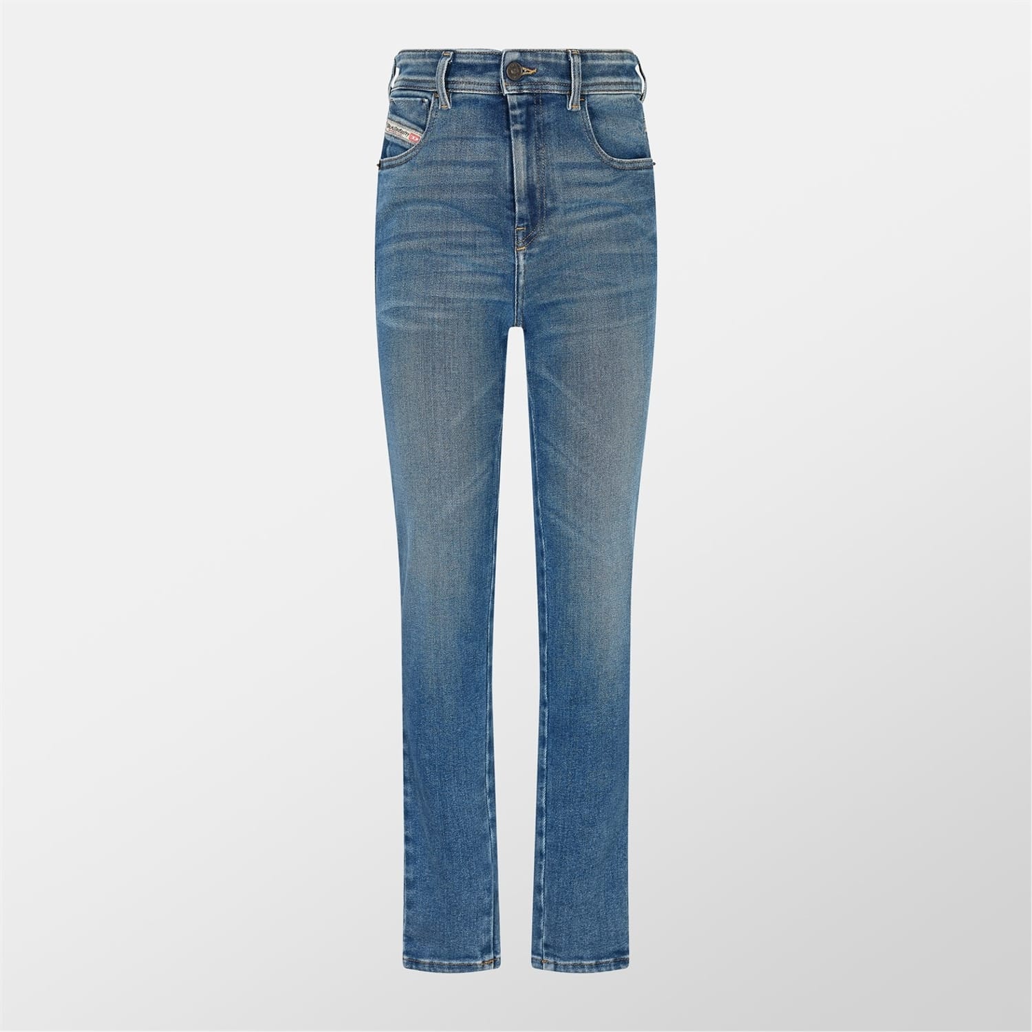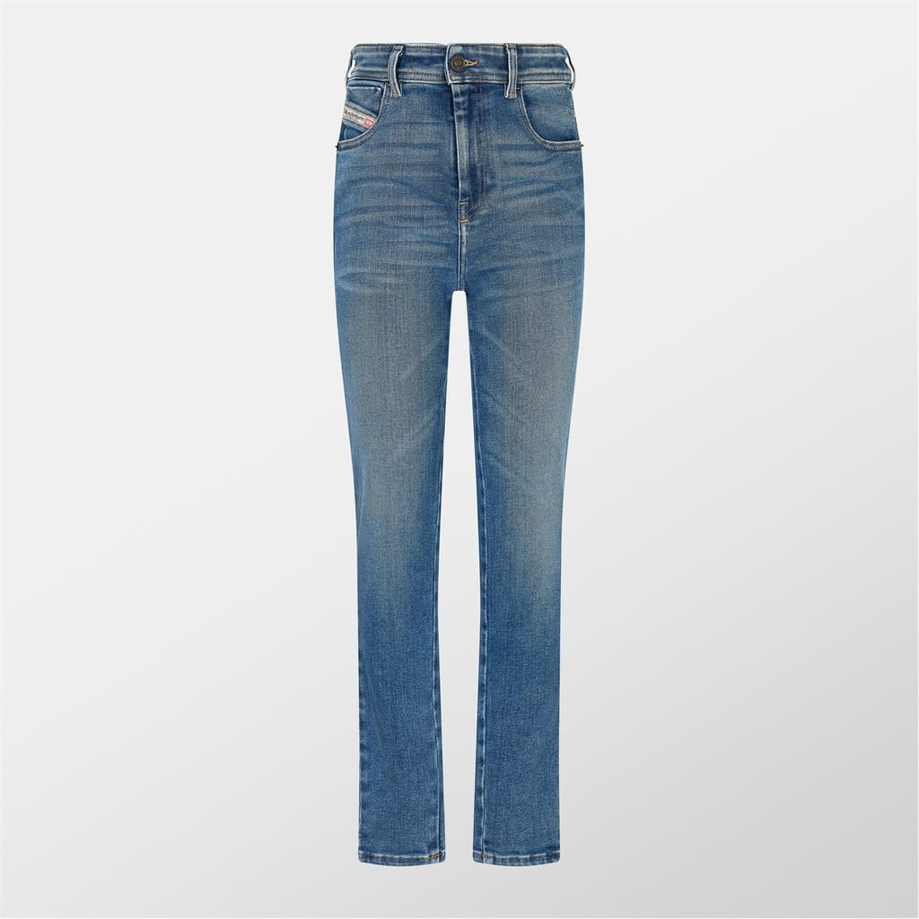- With a zip fly closure and four pockets, these jeans exude both practicality and refinement, while the embroidered logo tag inside the top left pocket adds a touch of exclusivity. Perfect for a casual outing or a night on the town, they effortlessly transition from day to night with a touch of urban edge and timeless sophistication. Step confidently into any setting with Diesel's Super Skinny 1984 Slandy-High Jeans, where every detail embodies the essence of contemporary luxury.