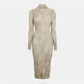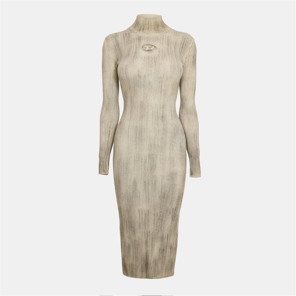 This Diesel sweater dress is a maxi-length piece featuring a high neck and a ribbed pattern. Designed with a slim fit, it offers a straight hem for a sleek silhouette. The dress is adorned with a logo embellishment, adding a touch of brand identity. -