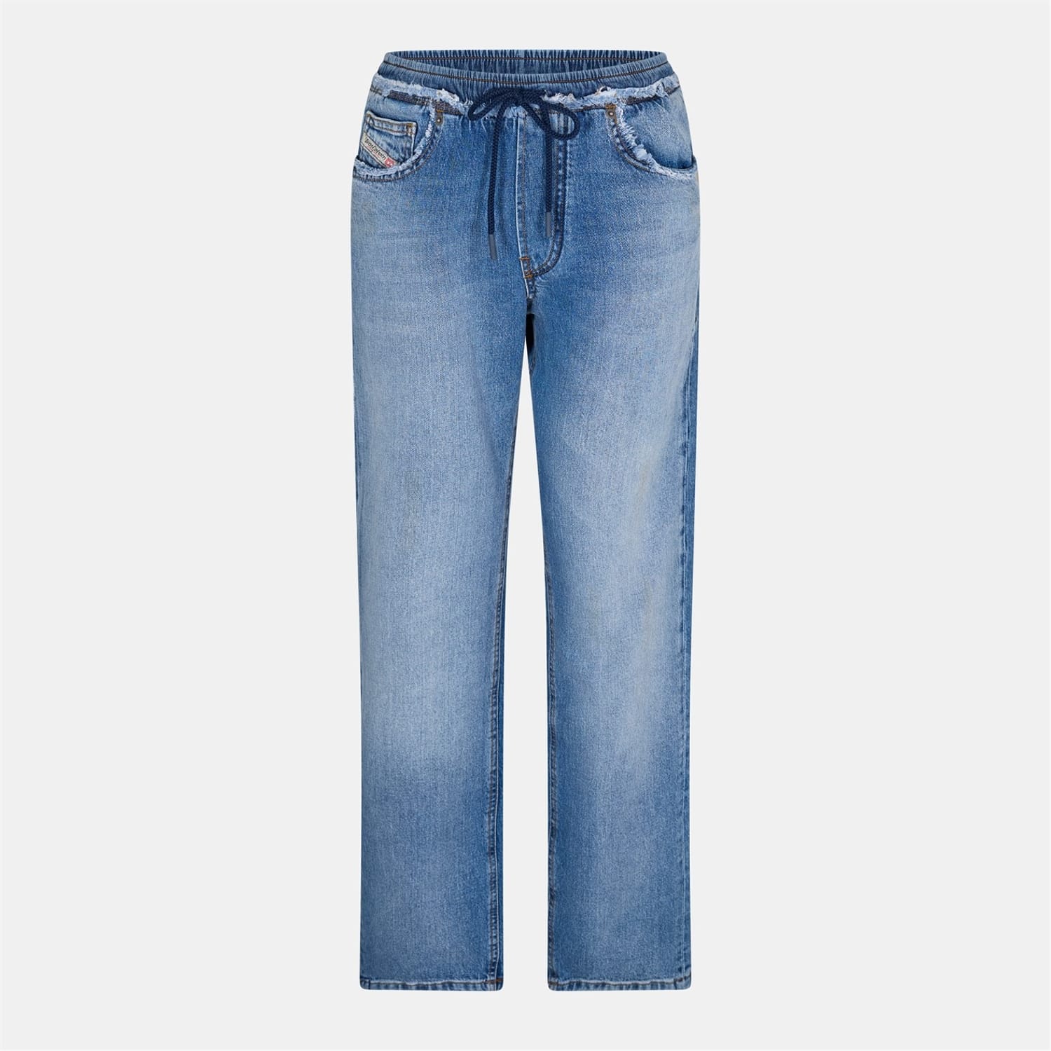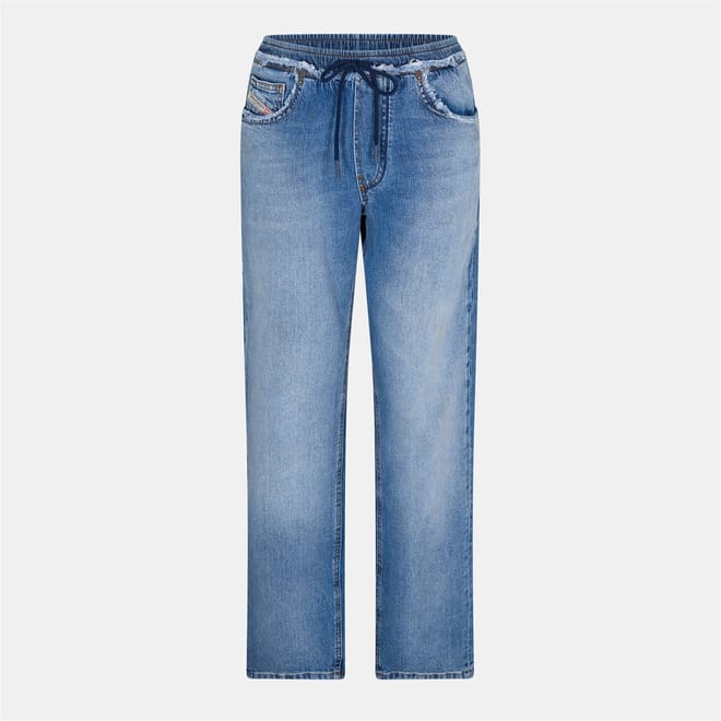 Discover Diesel's relaxed fit jeans featuring a five-pocket design. These jeans come with a convenient zip fly closure and a drawstring for added comfort. The iconic logo embellishment adds a touch of brand identity, making these jeans a stylish choice for any casual occasion. -