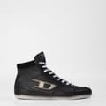 Discover Diesel's hi-top sneakers, crafted from premium leather for a sleek finish. These shoes feature a classic round toe design, offering both style and comfort. Perfect for those who appreciate a blend of fashion and functionality, these sneakers are a versatile addition to any wardrobe. -