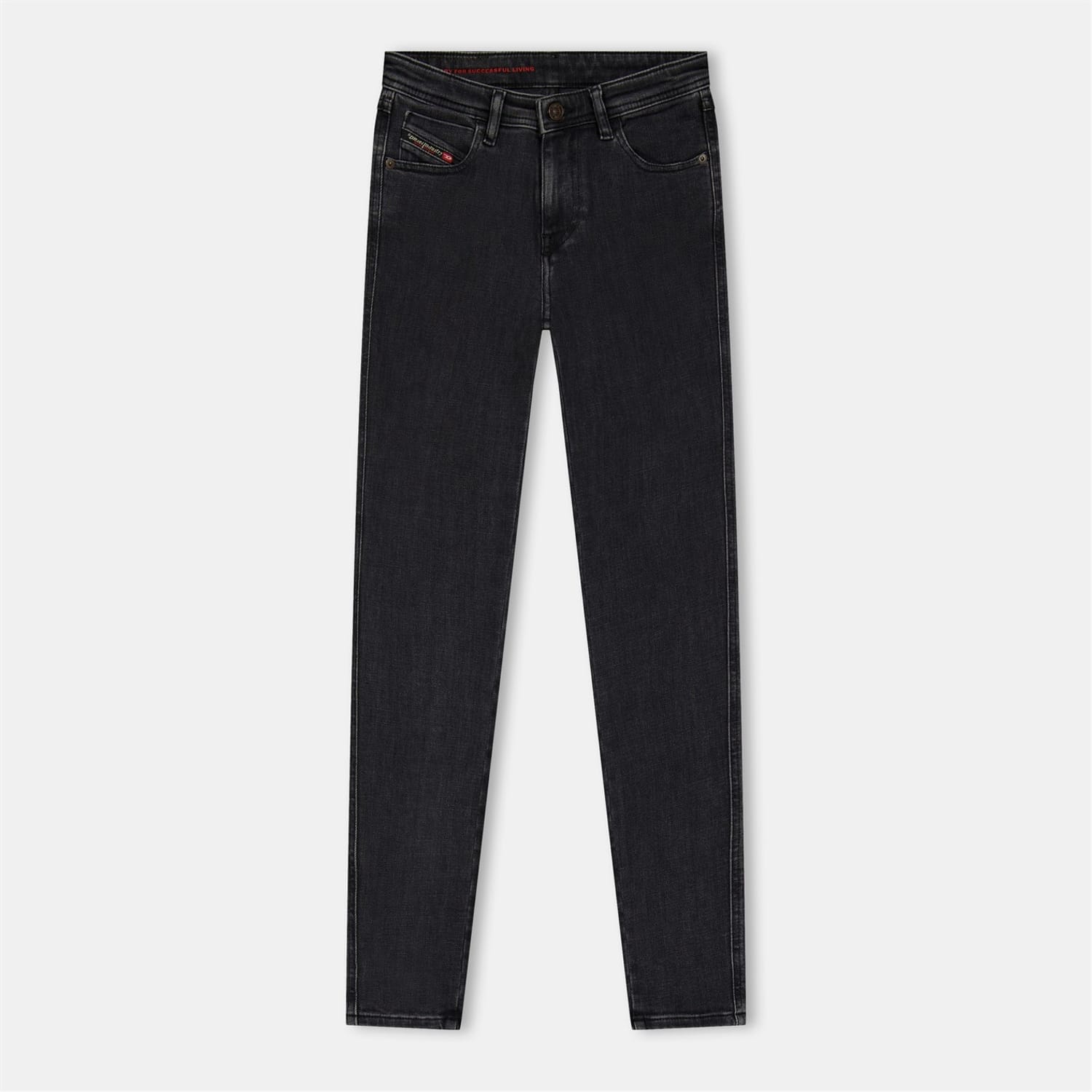Discover Diesel's five-pocket design jeans, featuring a sleek skinny fit. These jeans come with a convenient zip fly and button closure, ensuring a secure fit. The iconic logo embellishment adds a touch of brand identity, making these jeans a stylish addition to your wardrobe. -
