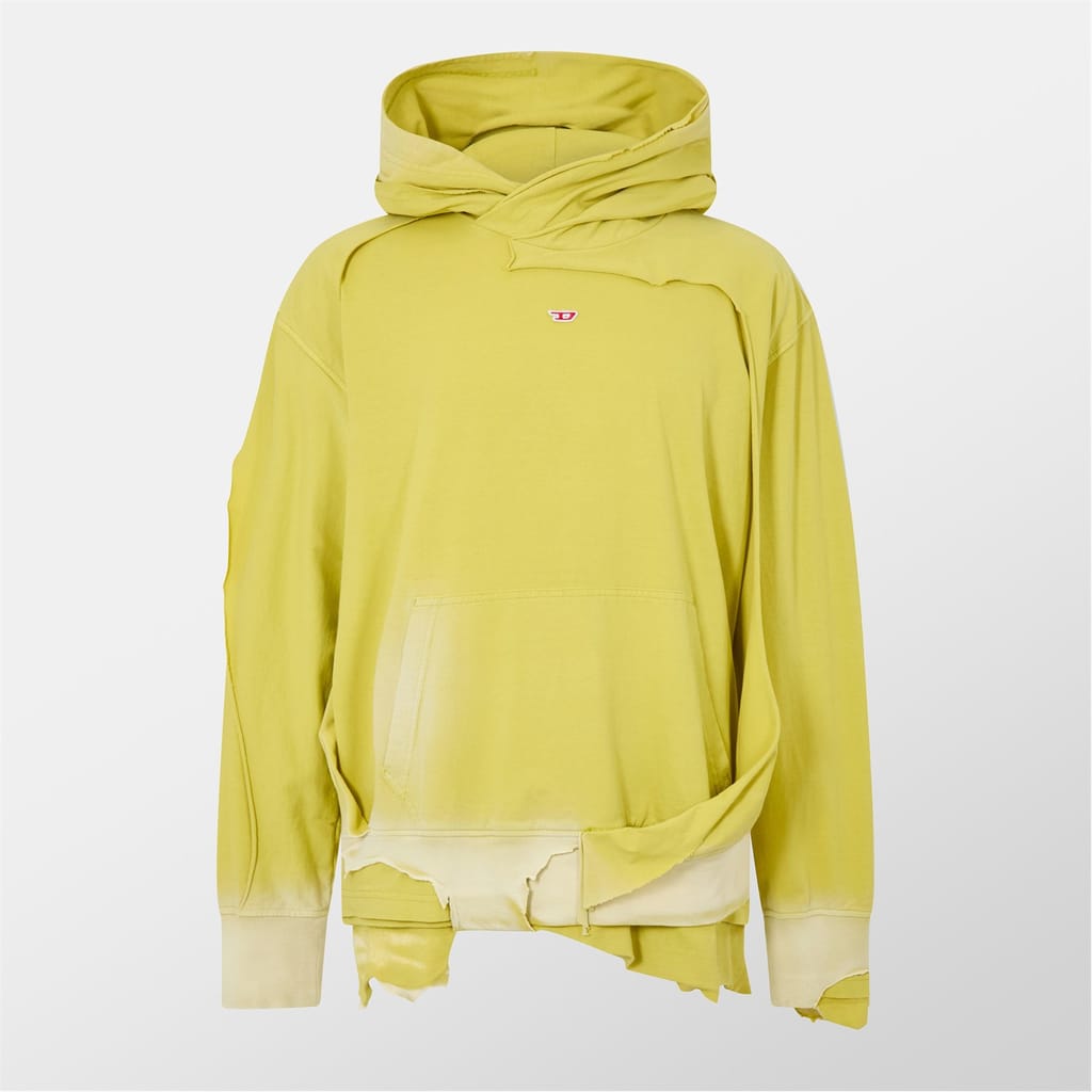 Discover Diesel's relaxed fit top, featuring a hooded neckline and long sleeves with ribbed cuffs. This solid piece is adorned with a logo and a practical pocket, offering both style and functionality. -