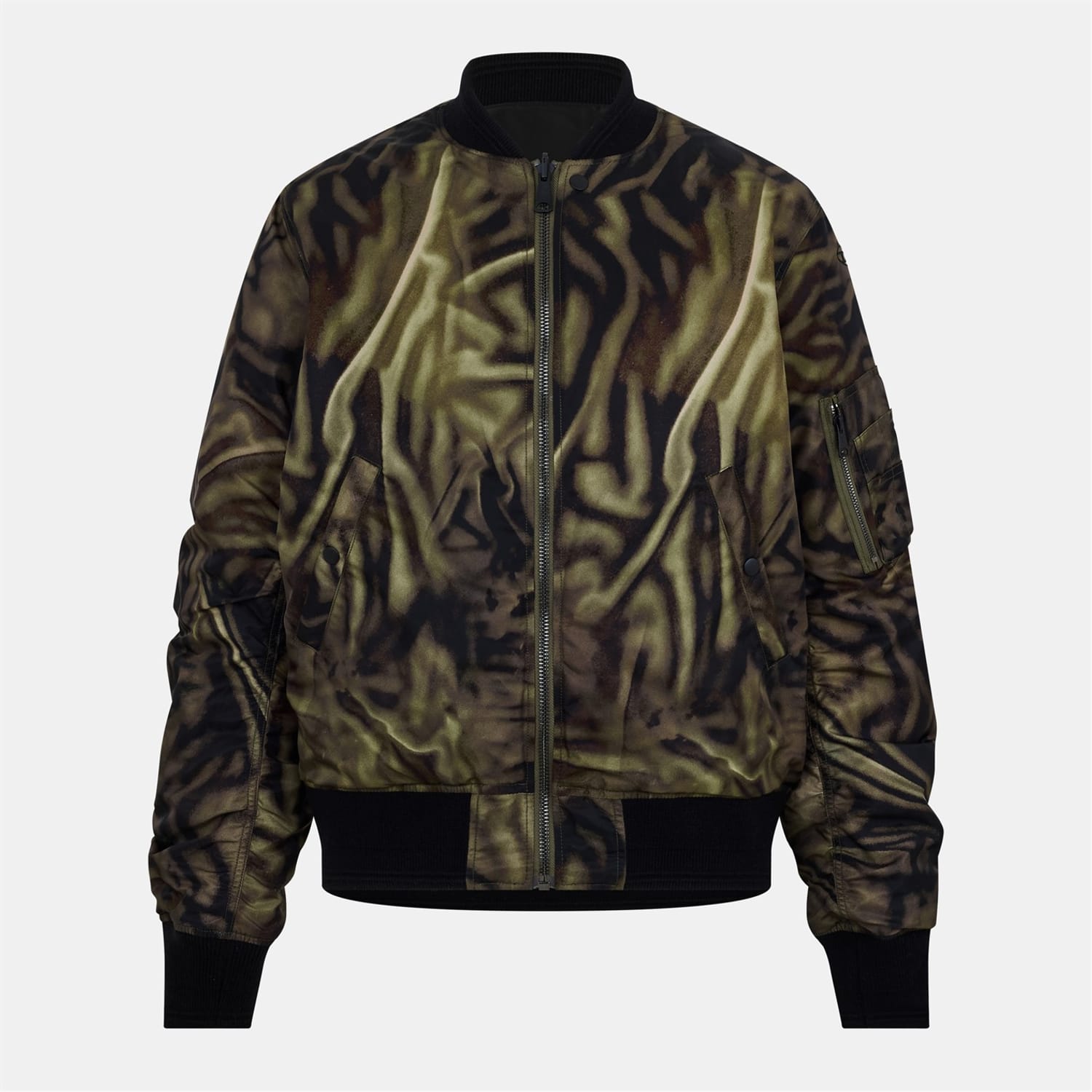 This Diesel top features a bomber collar and long sleeves with ribbed cuffs, offering a regular fit. The abstract pattern adds a unique touch, while the zipper closure ensures ease of wear. Embellished with practical pockets, including a zipped pocket, this piece is part of the casual collection, making it a versatile addition to your wardrobe. -