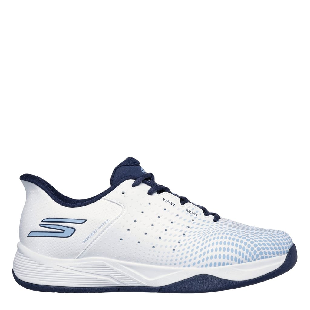 Bring on the rallies in fantastic comfort that doesn't quit wearing Skechers Hands Free Slip-ins® Relaxed Fit®: Viper Court Reload. Designed for game play on outdoor pickleball, padel, and tennis courts, this roomy slip-on has been granted the APMA Seal of Acceptance and features our Heel Pillow® with an athletic mesh and synthetic screen print upper, removable Arch Fit® insole, and lightweight ULTRA FLIGHT® cushioning. This machine washable design is complete with a Goodyear® Rubber Performance Outsole built for increased durability and control on the court surface. -