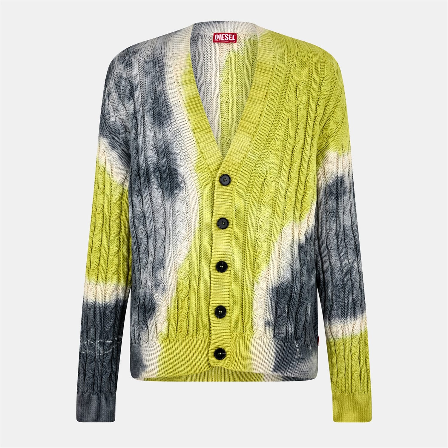 Diesel's Jonny Maglia Cardigan is the perfect statement piece to elevate any outfit with its bold tie-dye design. Crafted with a cosy cable-knit weave, it offers both warmth and style. The V-neck and button-up placket add a refined touch to this dynamic piece. Ideal for casual outings or relaxed evenings with friends.