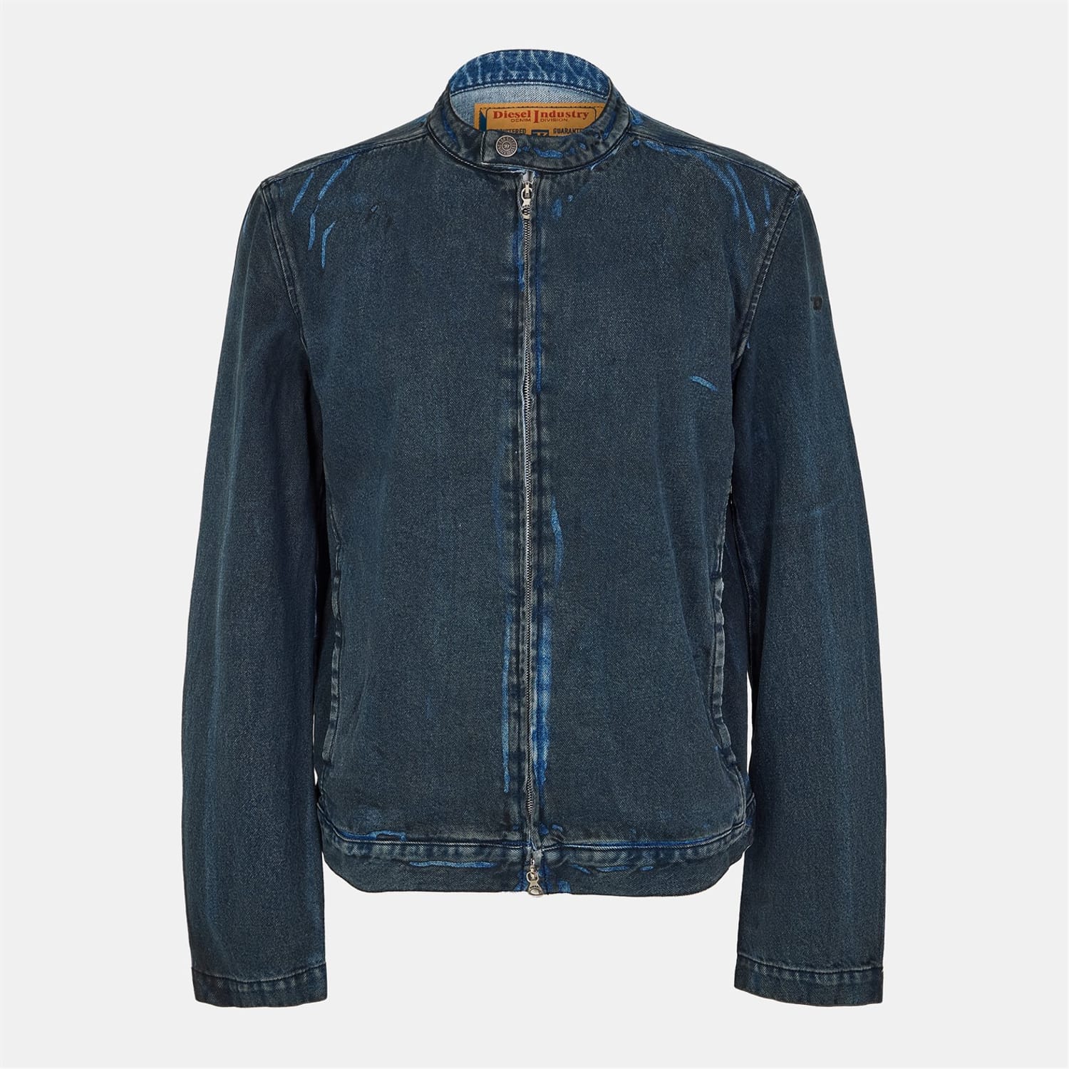 This Diesel bomber jacket features a short length and a mock neck design, offering a modern twist on a classic style. The solid pattern and regular fit provide a sleek look, while the straight hem and zipper closure ensure practicality. A subtle logo embellishment adds a touch of brand identity to this versatile piece. -
