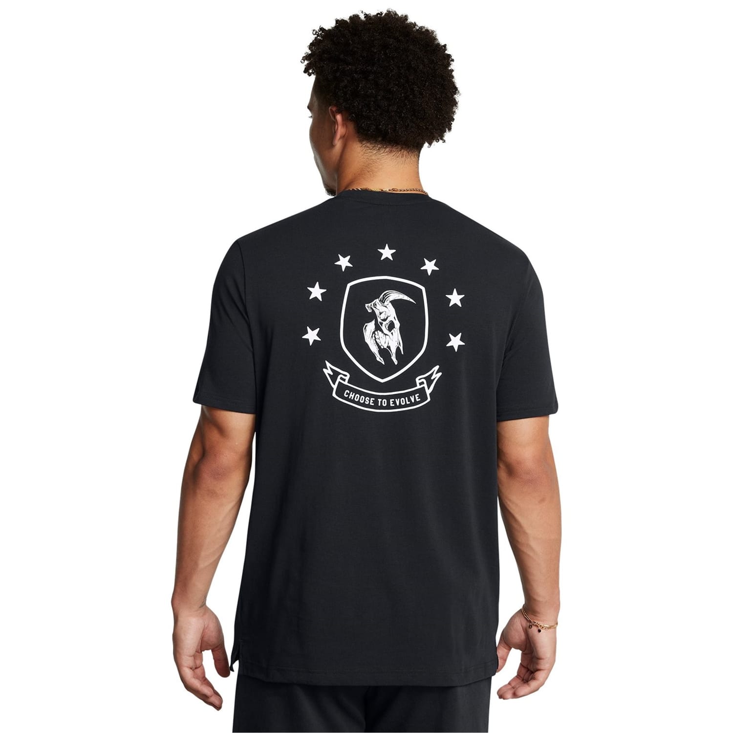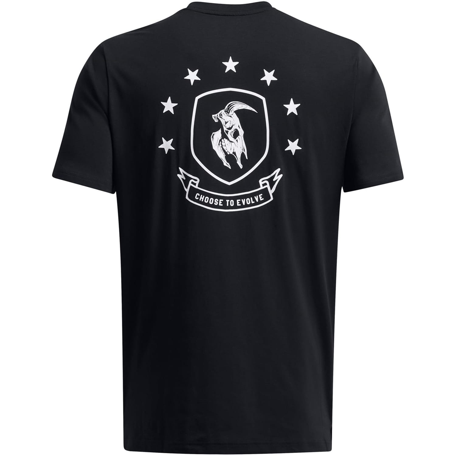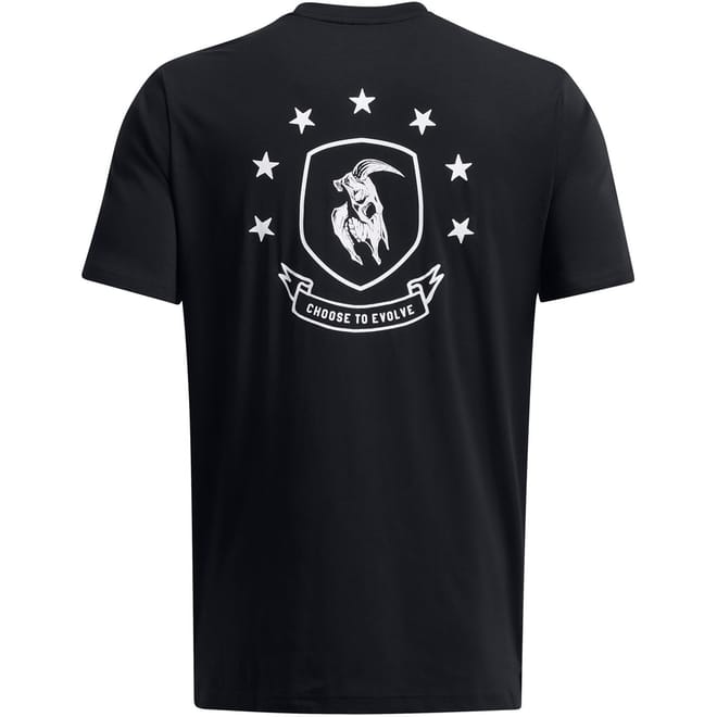 This Under Armour top is perfect for casual and activewear collections. It features a crew neck and short sleeves, offering a regular fit. The top is adorned with a large genie graphic print and a logo embellishment, adding a distinctive touch to your wardrobe. -