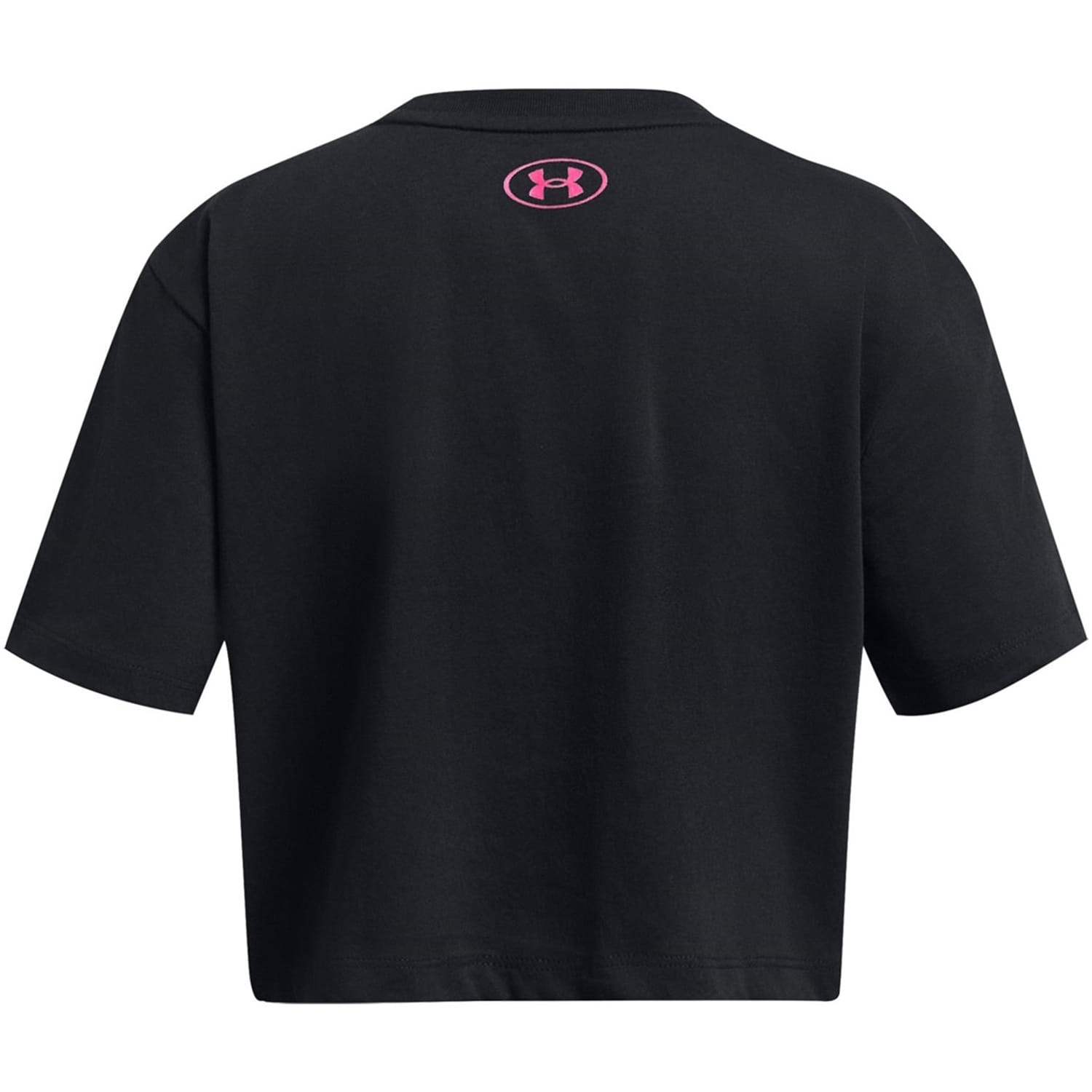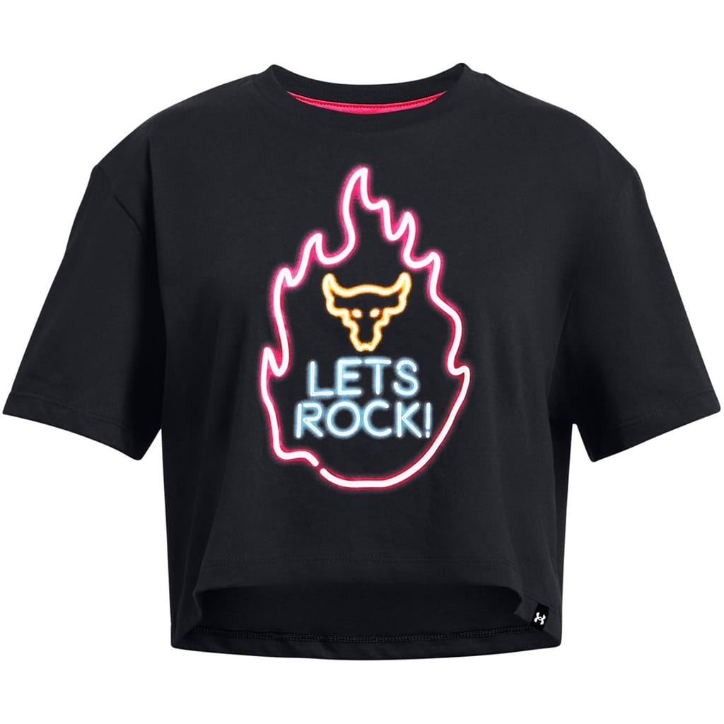 This Under Armour campus top is a casual staple with a cropped length and regular fit. Featuring a crew neck and short sleeves, it showcases a striking flame graphic print. The top is embellished with a logo, adding a distinctive touch to its design. -