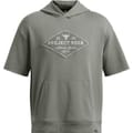 This Under Armour sleeveless top features a hooded design with a drawstring closure, offering a relaxed fit. The drop shoulder style and ribbed cuffs add to its casual appeal. The solid pattern is complemented by an embroidered logo, making it a versatile addition to your wardrobe. -