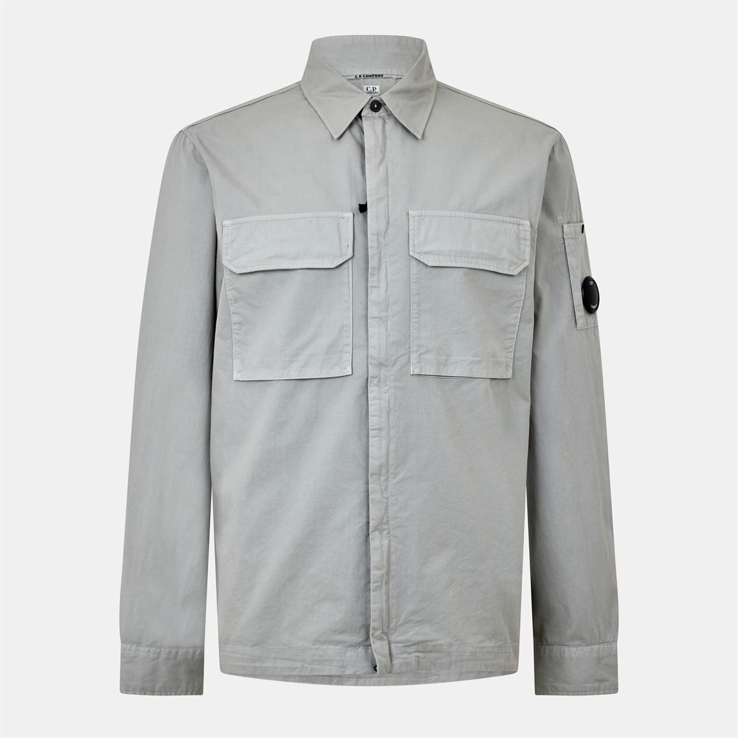 This C.P. Company overshirt features a classic shirt collar and a straight hem, offering a regular fit. The solid pattern is complemented by a button closure and practical pockets. A subtle logo embellishment adds a touch of brand identity to this versatile piece. -