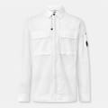 This C.P. Company overshirt features a classic shirt collar and a straight hem. Designed with a button closure, it offers a regular fit and a solid pattern. The overshirt is embellished with practical pockets and a subtle logo, adding a touch of brand identity. -