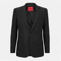 This Hugo suit jacket from the formal collection features a notch collar and a straight hem. It is designed with a regular fit and a solid pattern, offering a sleek and professional appearance. The jacket includes a button closure and is subtly embellished with a logo, adding a touch of brand identity. -