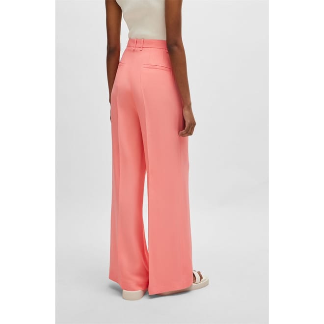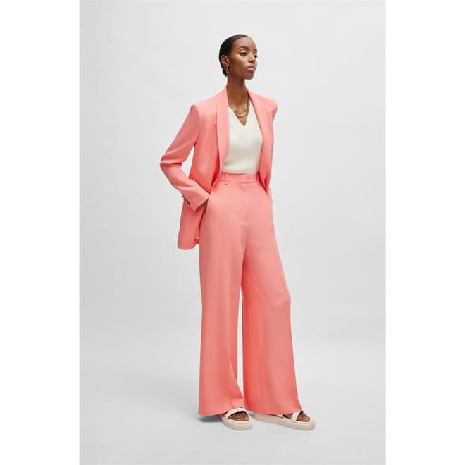 These Boss trousers offer a sophisticated touch to your wardrobe. Featuring a zip fly and button closure, they ensure a secure fit. The design includes practical pockets, adding functionality to the sleek look. Perfect for those seeking a blend of style and utility in their pants collection. -