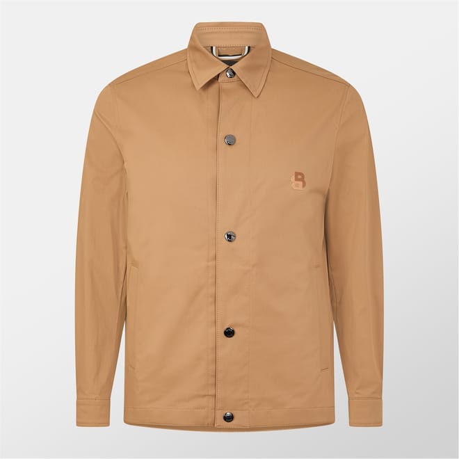 This Boss formal jacket is a sophisticated addition to any wardrobe. Featuring a shirt collar and a straight hem, it offers a regular fit for a classic silhouette. The solid pattern is complemented by a discreet logo embellishment. The jacket is secured with a snap button closure, ensuring a sleek finish. -