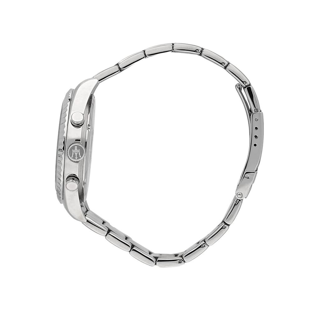 Discover the elegance of Maserati with this wrist watch, featuring a striking blue dial and an analogue display. The steel bracelet strap adds a touch of sophistication, while the 100m water resistance ensures durability. Perfectly crafted for those who appreciate style and functionality in their timepieces. -
