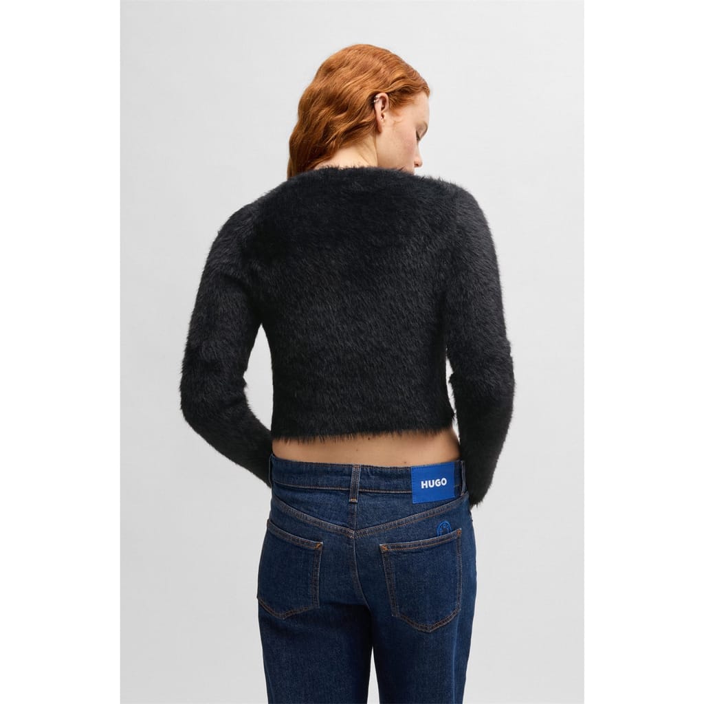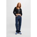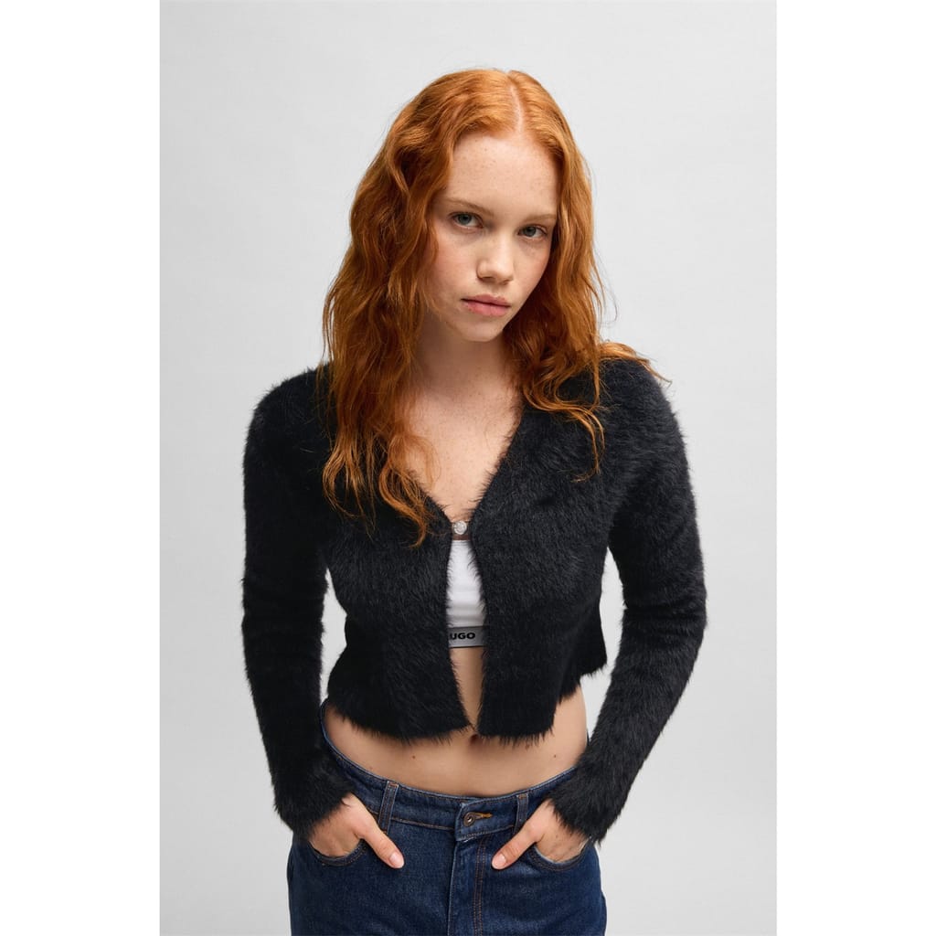 This Hugo cropped top features a relaxed fit with long sleeves and a V-neck. The solid pattern is complemented by a button closure, while the logo embellishment adds a subtle touch of brand identity. -