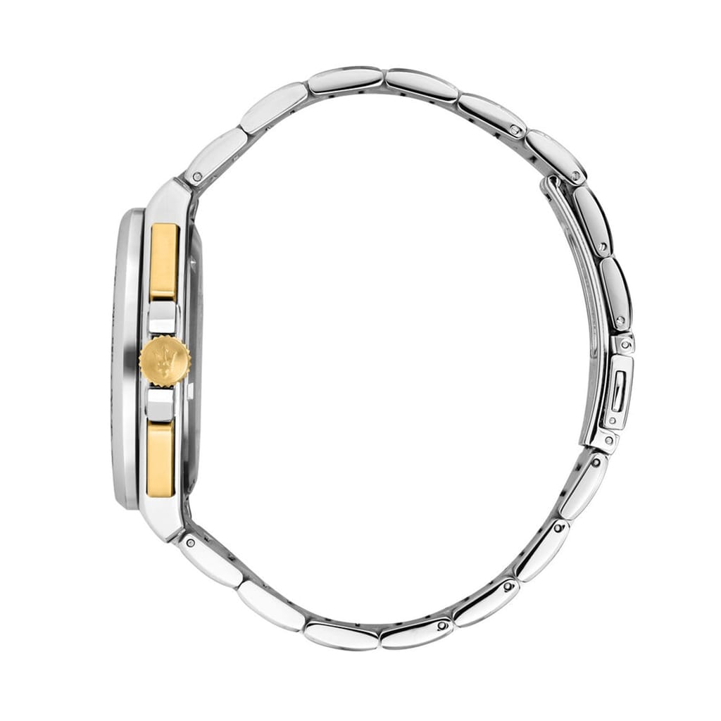 Discover the elegance of Maserati with this wrist watch, featuring a sleek black dial and an analogue display. The watch is crafted with a durable steel bracelet strap, offering both style and resilience. Perfect for those who appreciate refined design and quality craftsmanship, this timepiece embodies sophistication and functionality. -
