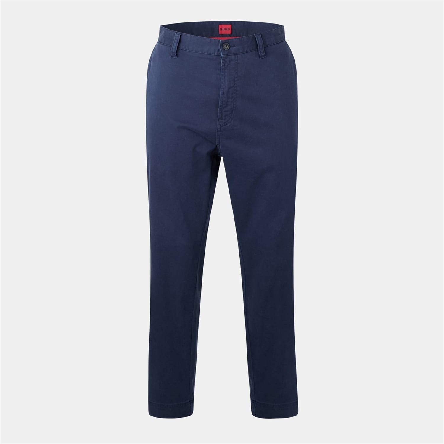 Elevate your wardrobe with Hugo chinos, featuring a button and zip fly closure for a secure fit. These trousers are adorned with a subtle logo embellishment, adding a touch of sophistication to your ensemble. Perfect for those seeking a blend of style and comfort. -