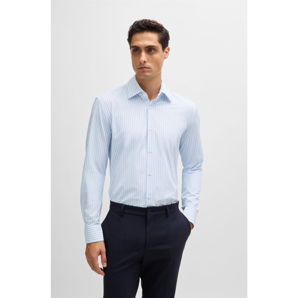 This Boss oxford top features a classic button-down design with long sleeves and a regular fit. The vertical stripe pattern adds a touch of sophistication, while the pocket embellishment provides a practical element. Perfect for a polished look. -
