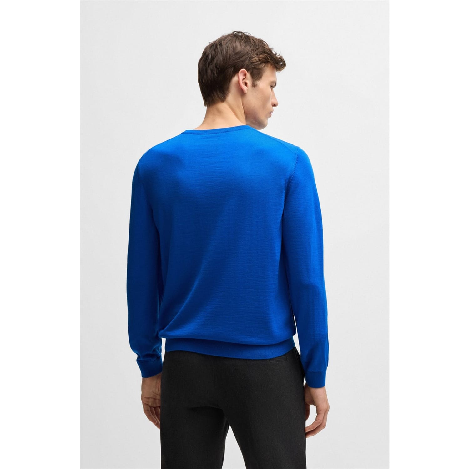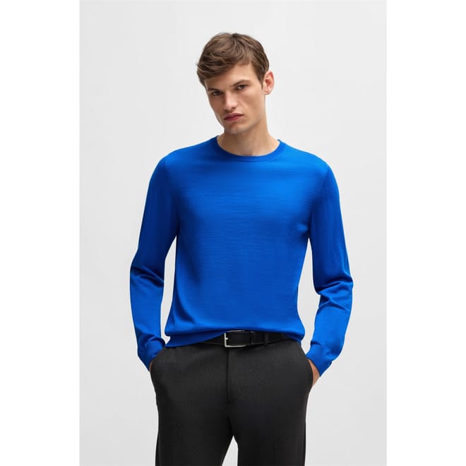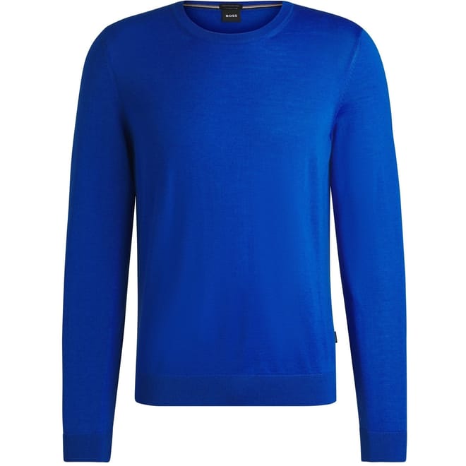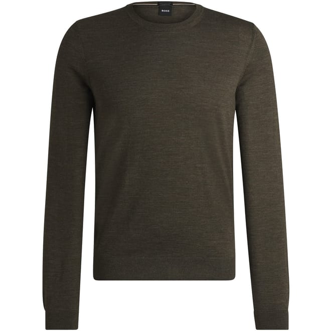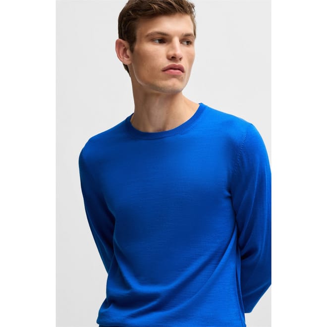 This Boss top features a classic crew neck and long sleeves, offering a regular fit for comfortable wear. The solid pattern is complemented by a subtle logo embellishment, adding a touch of brand identity. Ribbed cuffs complete the design, ensuring a neat finish. -