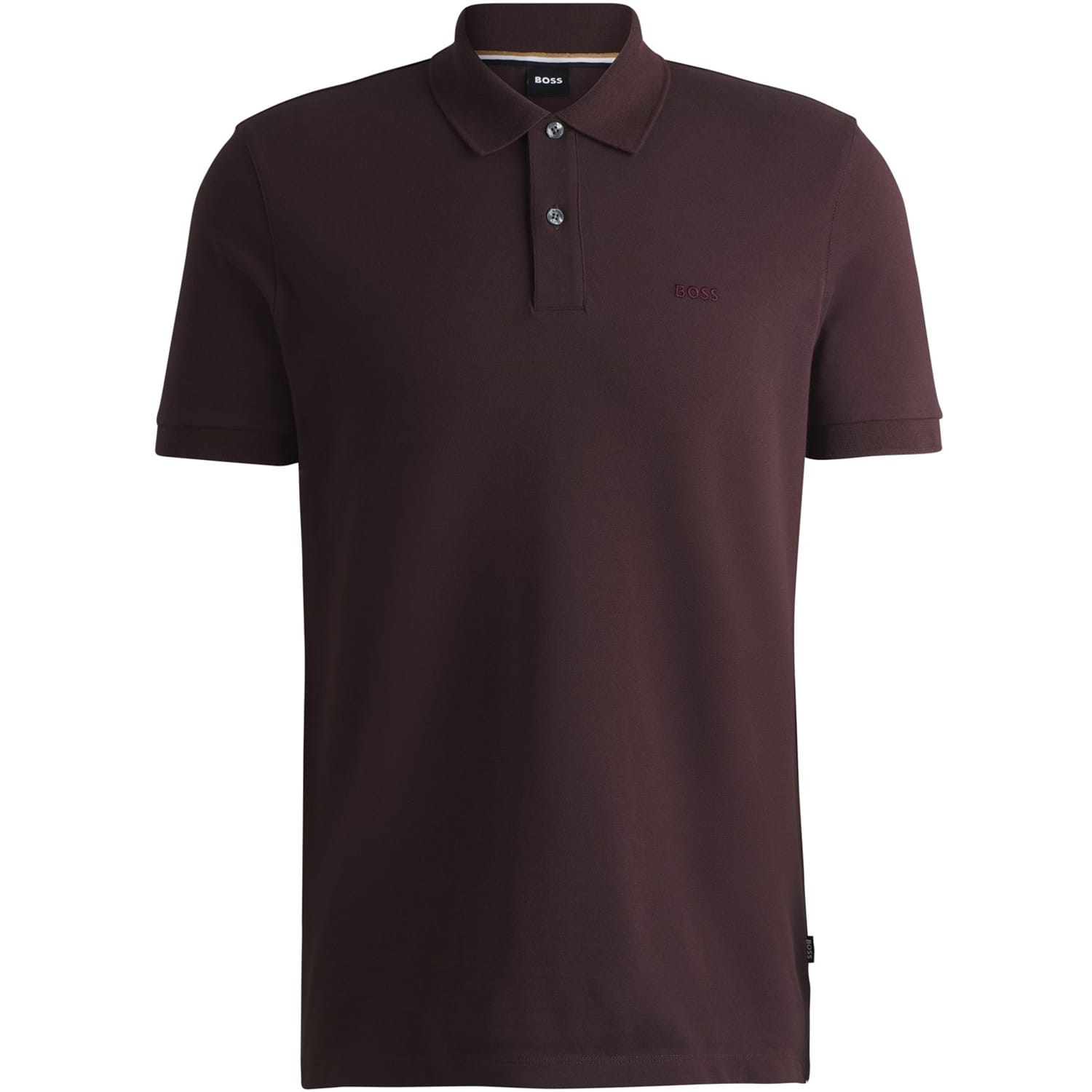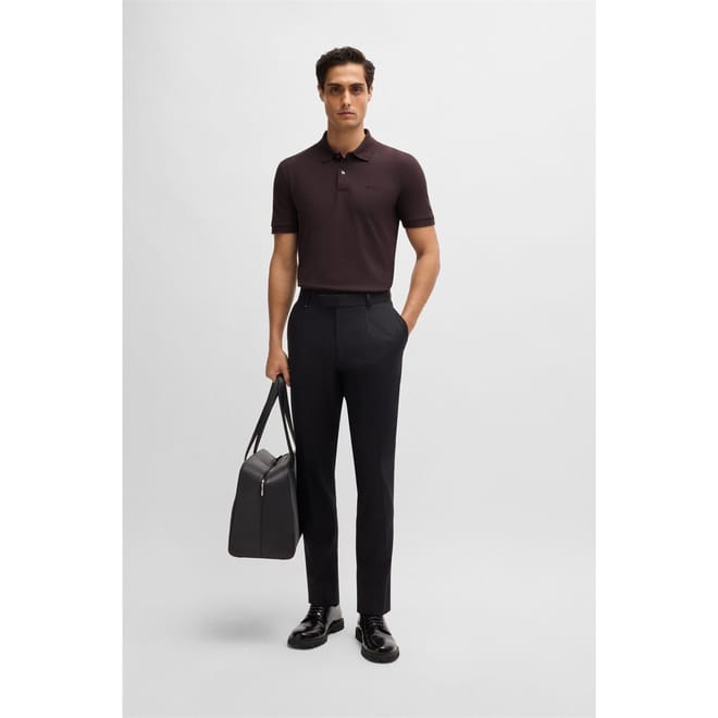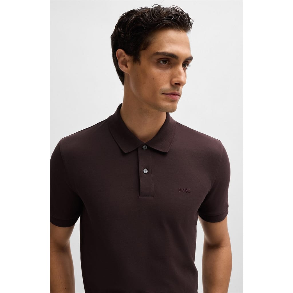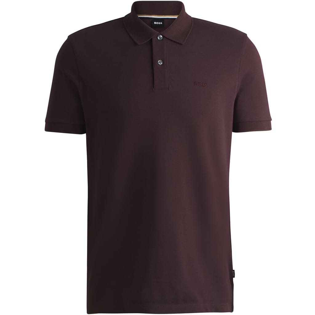 The Boss Pallas top is a semi-formal piece featuring a polo collar and short sleeves. Crafted in a solid pattern, it offers a regular fit and is adorned with a subtle logo embellishment. The button closure adds a classic touch, making it a versatile addition to any wardrobe. -