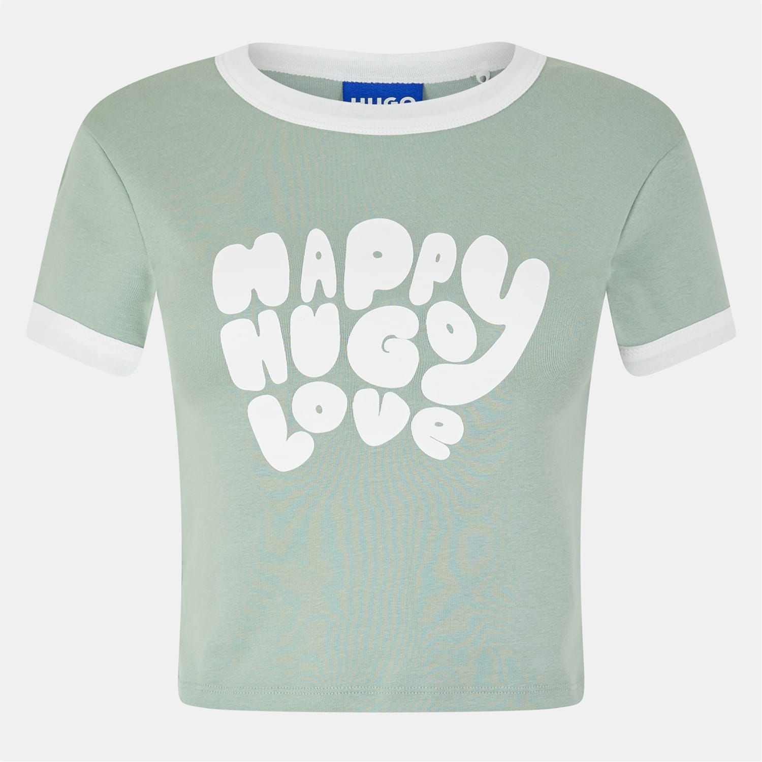 This Hugo cropped top is perfect for casual wear. Featuring a crew neck and short sleeves, it offers a regular fit with ribbed cuffs. The graphic print and logo embellishment add a stylish touch, while the lettering design enhances its modern appeal. -