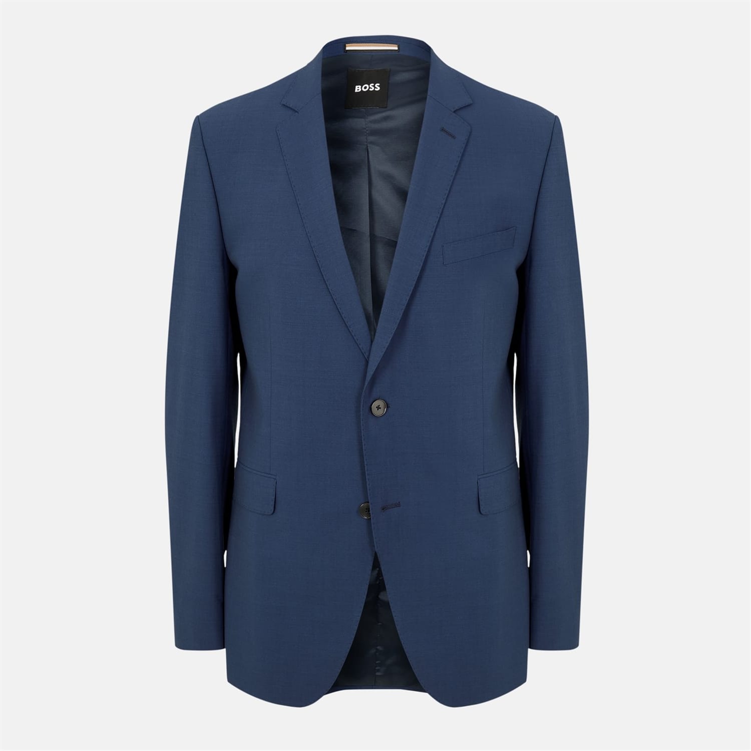 The Boss Reymond suit jacket is a formal two-piece set, featuring a solid pattern and a regular fit. It is designed with a notch collar, straight hem, and button closure. The jacket is embellished with a logo, adding a touch of brand identity to its classic design. -