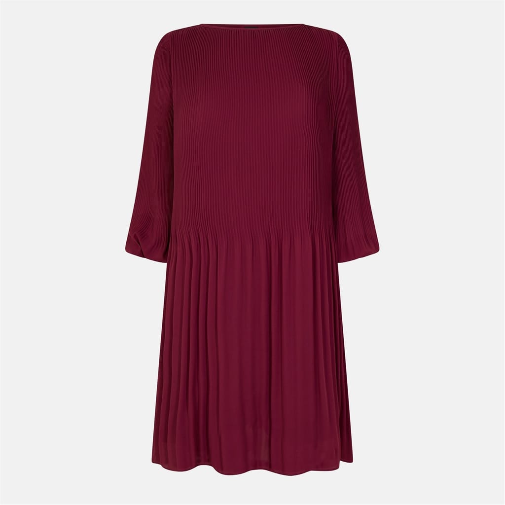 This Boss skater dress features a mini length and a ribbed pattern, offering a stylish and contemporary look. The boat neck adds a touch of elegance, while the three-quarter sleeves provide a balanced silhouette. The straight hemline completes the design, making it a versatile choice for various occasions. -