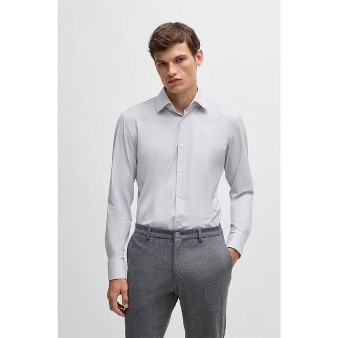 This Boss oxford top features a classic shirt collar and a polka dot pattern, perfect for all seasons. Designed with long sleeves and a cuff sleeve style, it offers a regular fit for comfortable wear. The button-down closure adds a touch of sophistication to this timeless piece. -