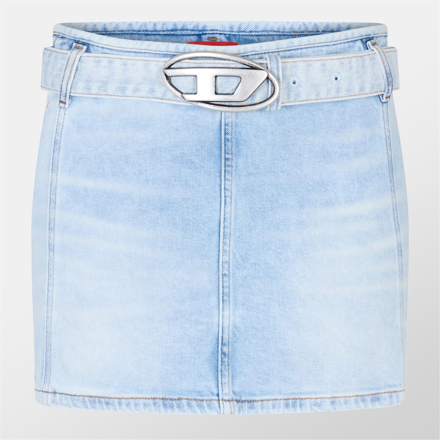 Discover Diesel's mini A-line skirt, a perfect addition to your casual collection. This slim-fit skirt features a belt closure with a buckle, offering a stylish and secure fit. The design is enhanced with a subtle logo embellishment, adding a touch of brand identity to your wardrobe. -