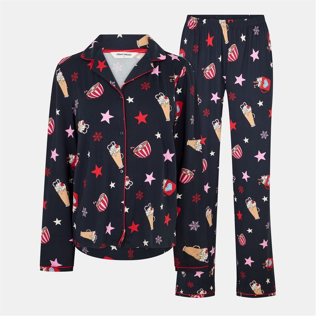 Urban Threads' Long-Sleeve Pyjama Set delivers comfort as a sleepwear outfit. The coordinated nightwear design features tailored details and a relaxed fit for cosy lounging and bedtime.