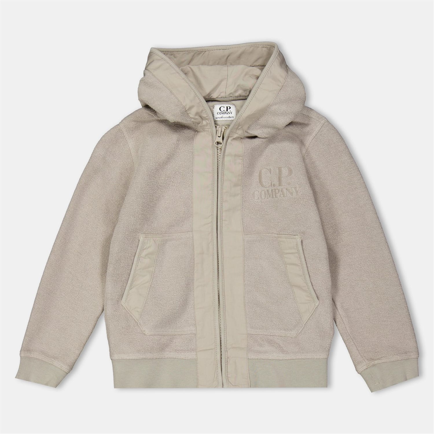 This C.P. Company sweatshirt jacket features a hooded design with a zipper closure, offering a practical and stylish option. The regular fit ensures comfort, while the ribbed cuffs and hem add a touch of detail. The solid pattern is complemented by the brand's logo embellishment, making it a versatile addition to any wardrobe. -