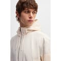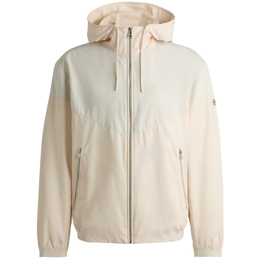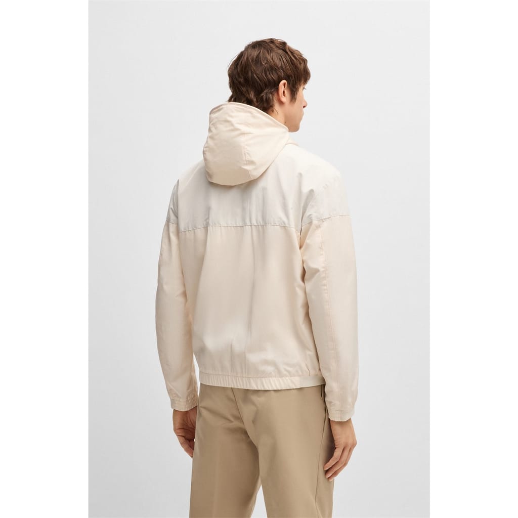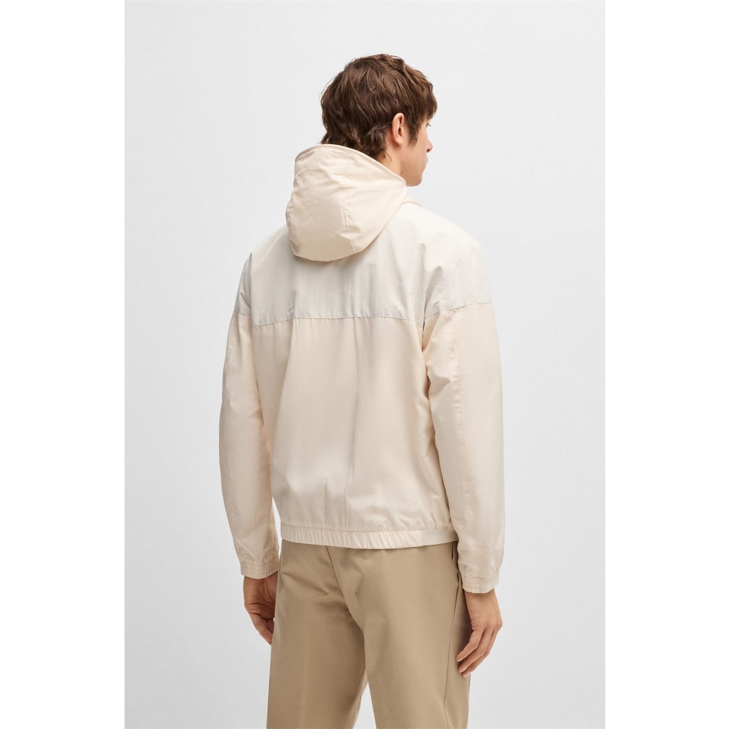This Boss anorak is designed with a hooded neckline and a relaxed fit, offering both style and comfort. The jacket features a water-repellent finish, making it ideal for unpredictable weather. It includes a zipper closure and elasticated cuffs for a secure fit. The solid pattern and straight hem provide a clean look, while the logo embellishment adds a touch of brand identity. -