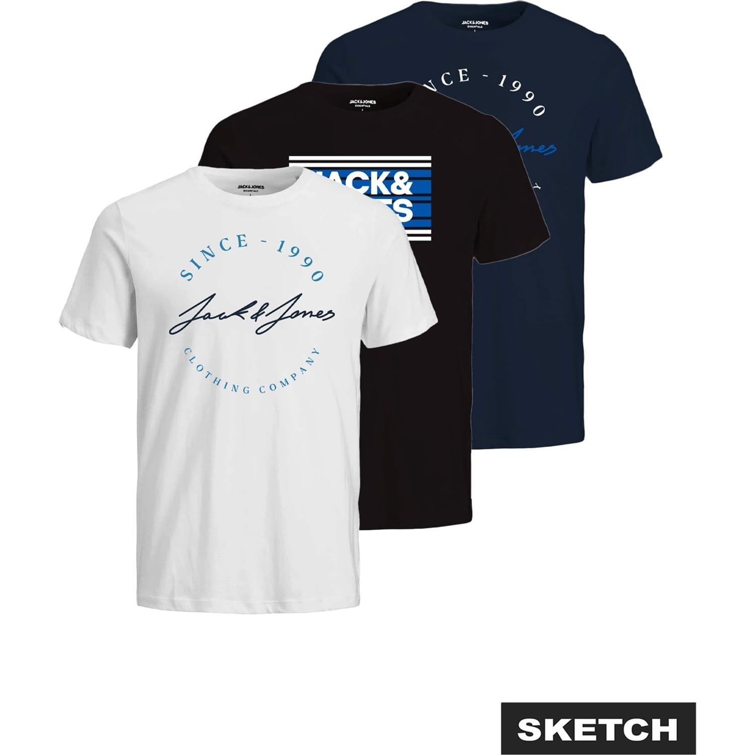 Discover the Jack & Jones casual tops set, featuring a 3-pack of regular fit, short sleeve tops. Each top showcases a graphic pattern with a classic crew neck design, perfect for a relaxed and stylish look. -