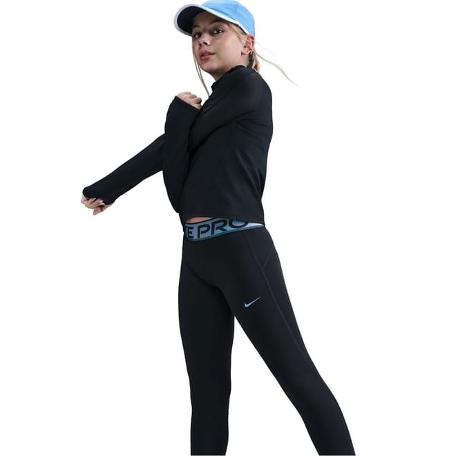 Nike leggings designed for running feature a performance-focused construction. These leggings showcase a sleek design with a logo and stitched detail, complemented by a waistband logo for added style. Ideal for those seeking comfort and functionality during athletic activities. -