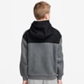 This Nike top from the outerwear collection is perfect for winter. It features a hooded neck and a convenient zipper closure. The long sleeves with ribbed cuffs ensure a comfortable fit, while the regular fit design offers ease of movement. The solid pattern is complemented by a subtle chest logo, adding a touch of brand identity to this versatile piece. -