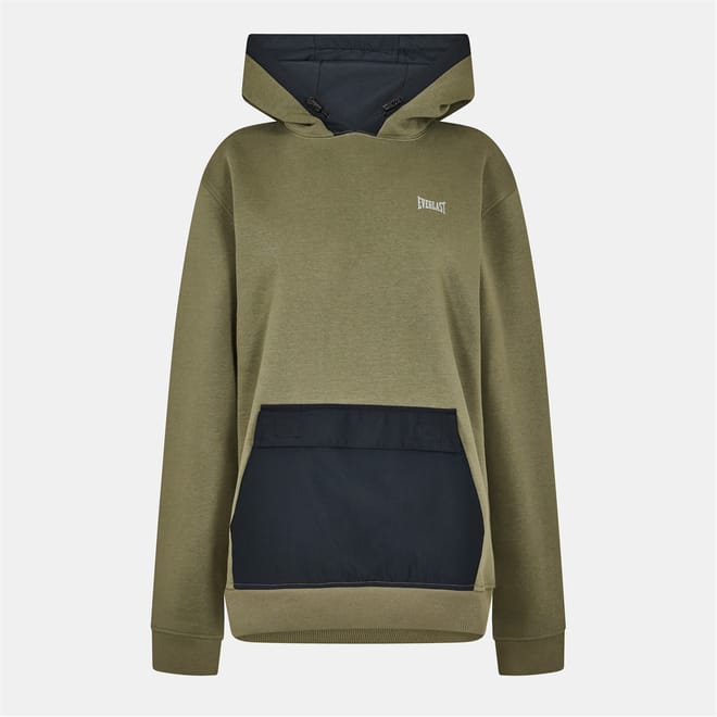 This Everlast top features a hooded neck and long sleeves, offering a regular fit. The solid pattern is enhanced by contrast panel embellishments, adding a unique touch. Ribbed cuffs complete the design, ensuring comfort and style. -