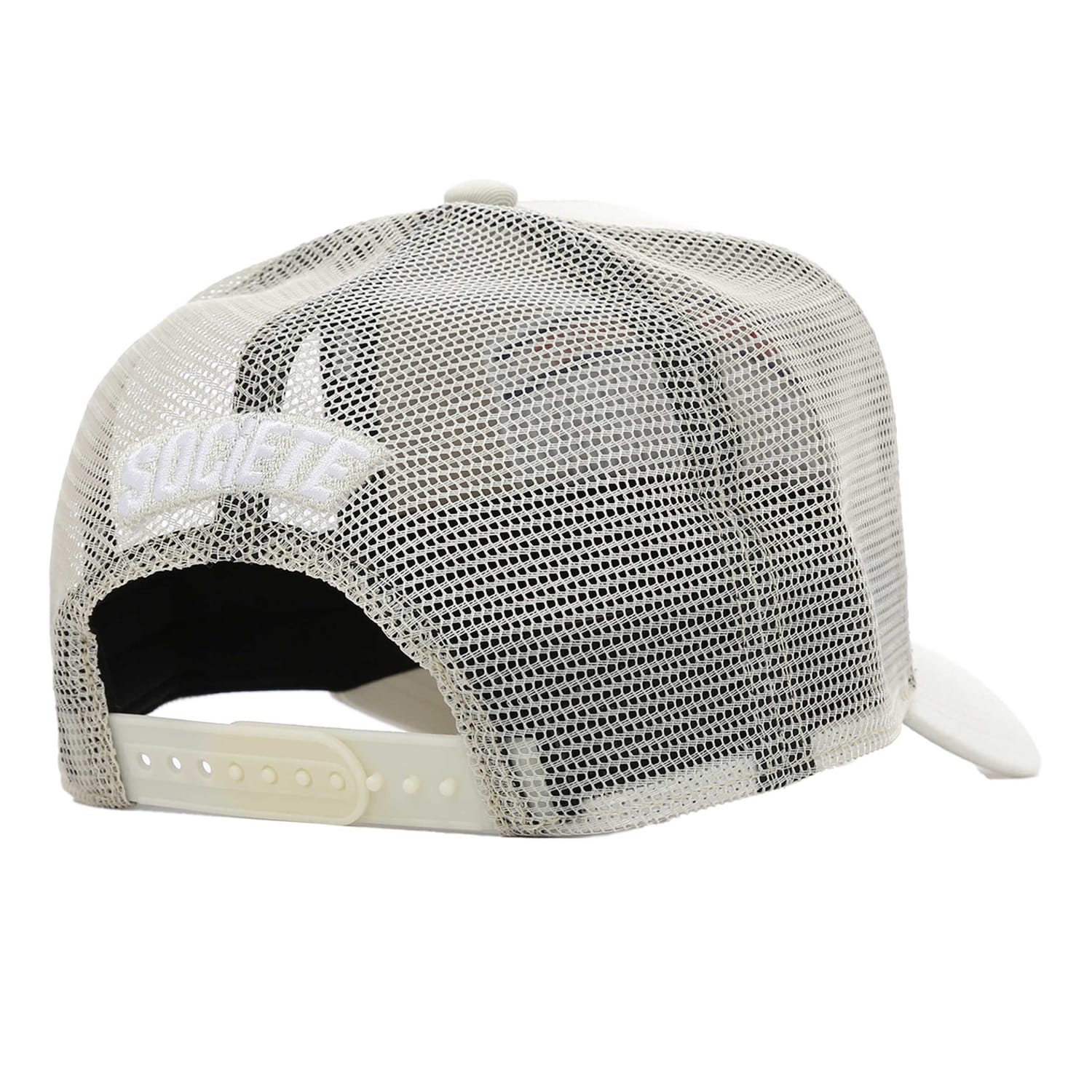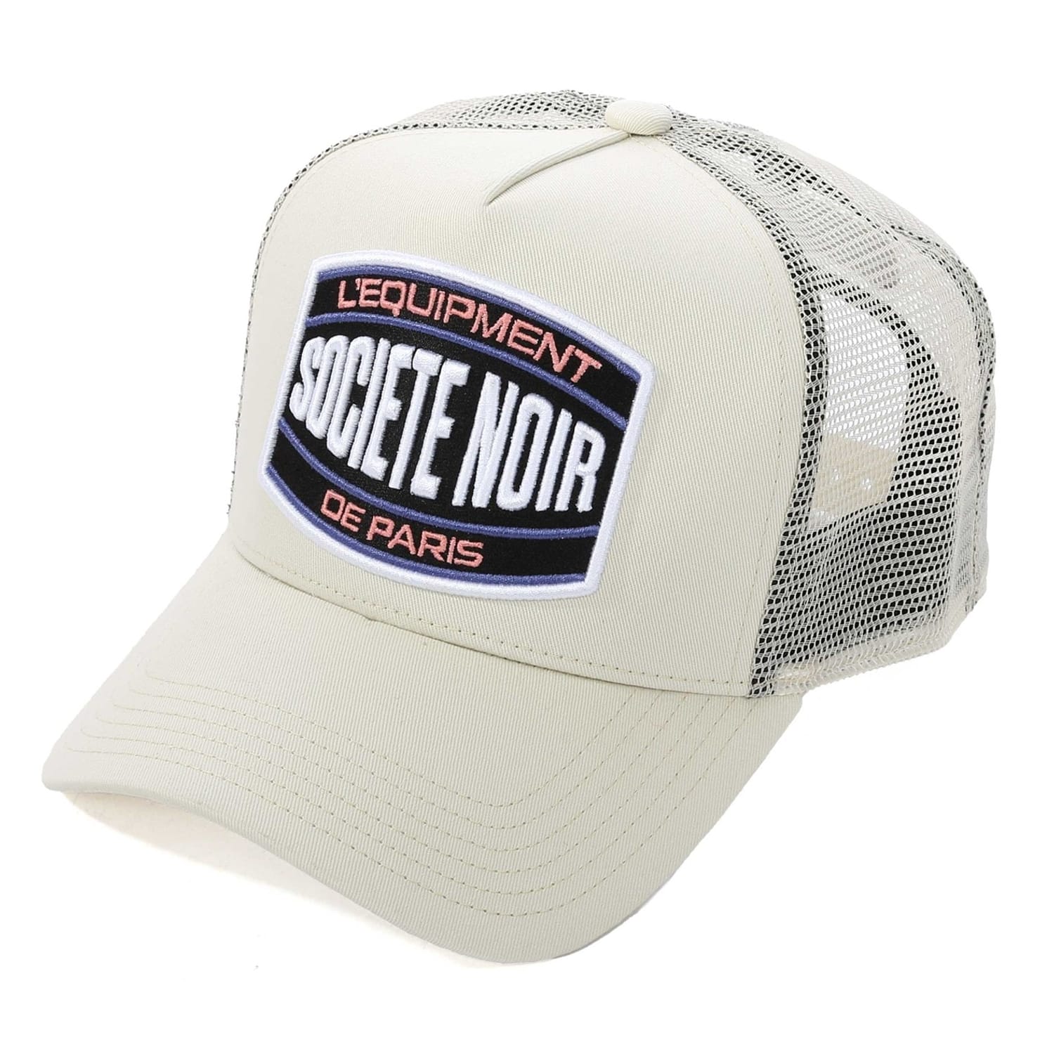 Discover the Societe Noir trucker cap, a stylish addition to your headwear collection. Featuring mesh details for breathability, this cap is designed with a snap-back closure for a comfortable fit. The cap is adorned with a logo patch and distinctive lettering, adding a unique touch to your look. Perfect for those who appreciate both style and functionality. -